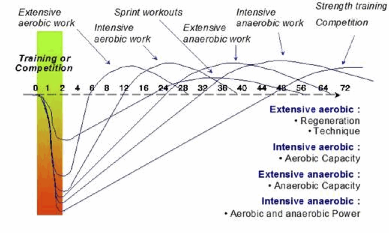Why it works: Supercompensation overshoots your prior level, creating a brief peak in capacity. Training then starts from a stronger baseline, driving continuous gains instead of plateaus or burnout.